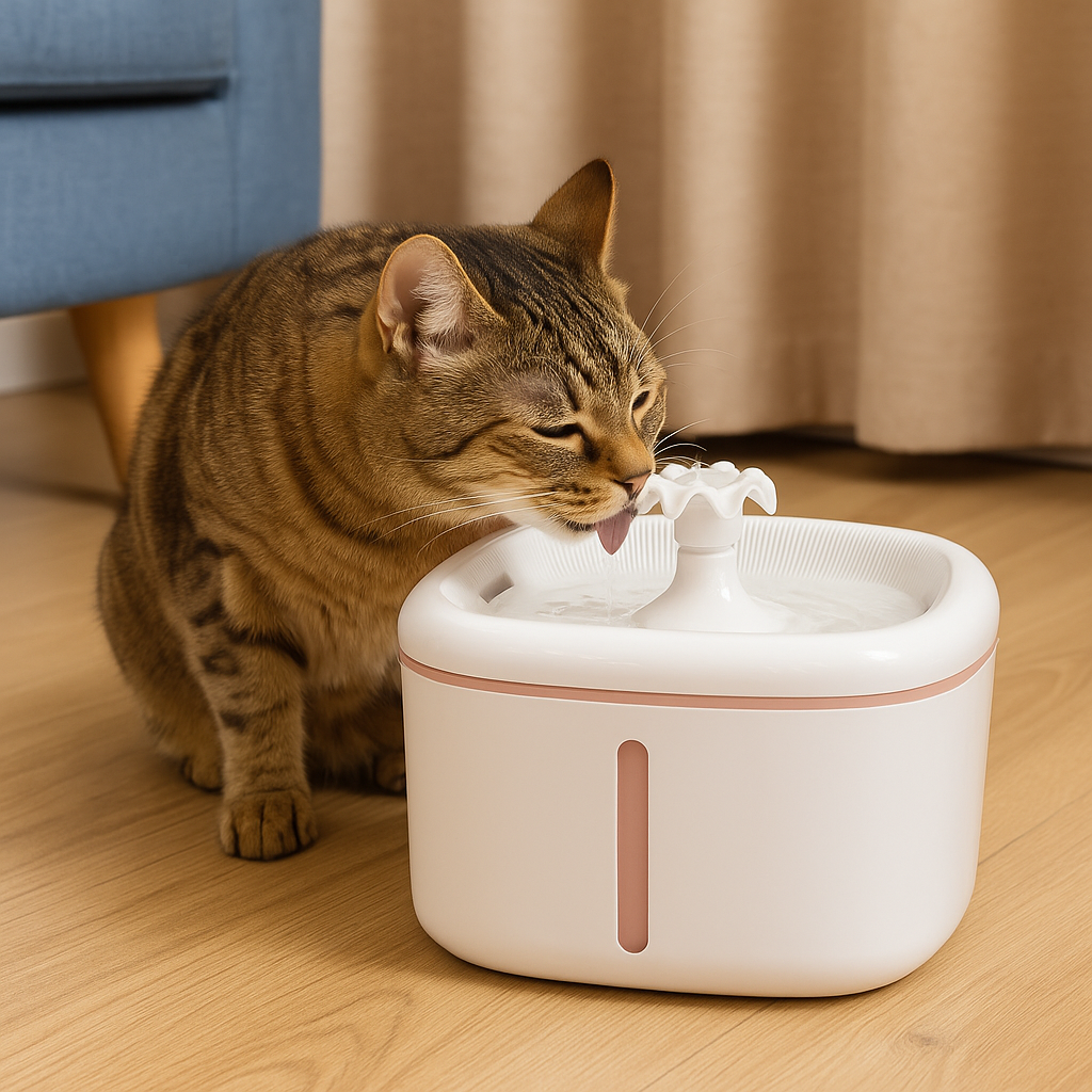 Фонтанът осигурява непрекъсната циркулация на водата, предотвратява застой и бактериален растеж, а вградената филтрационна система гарантира чистота и свежест.