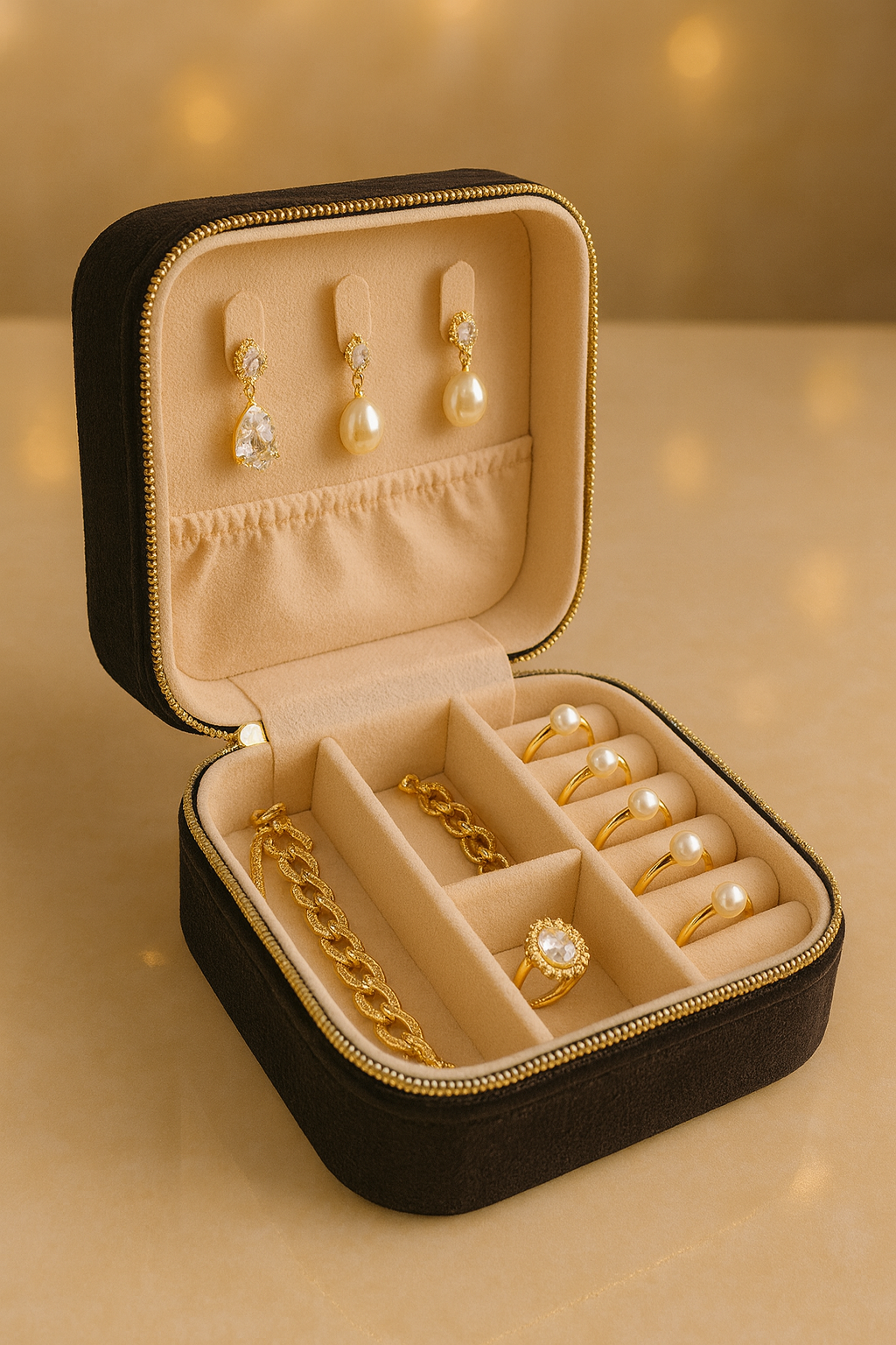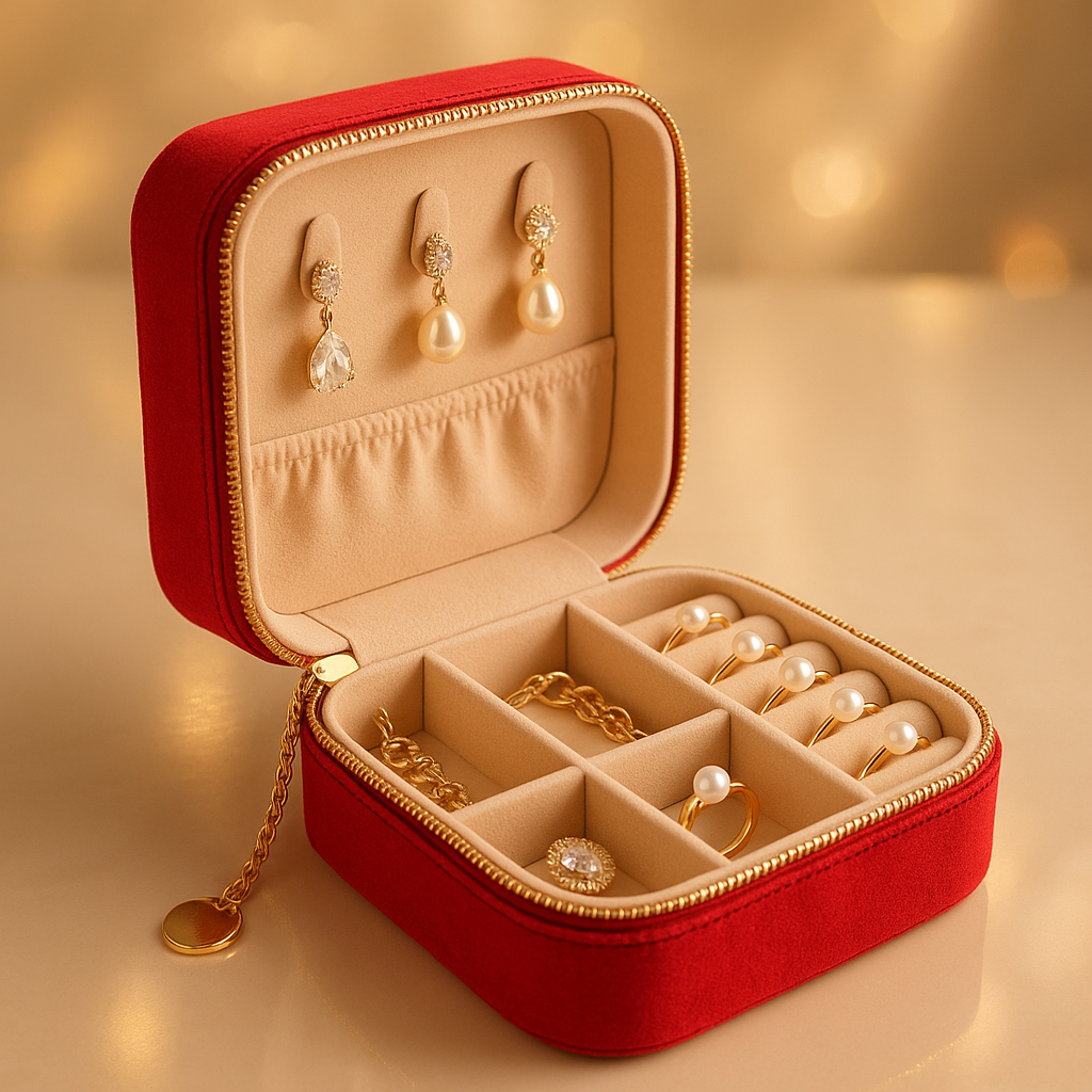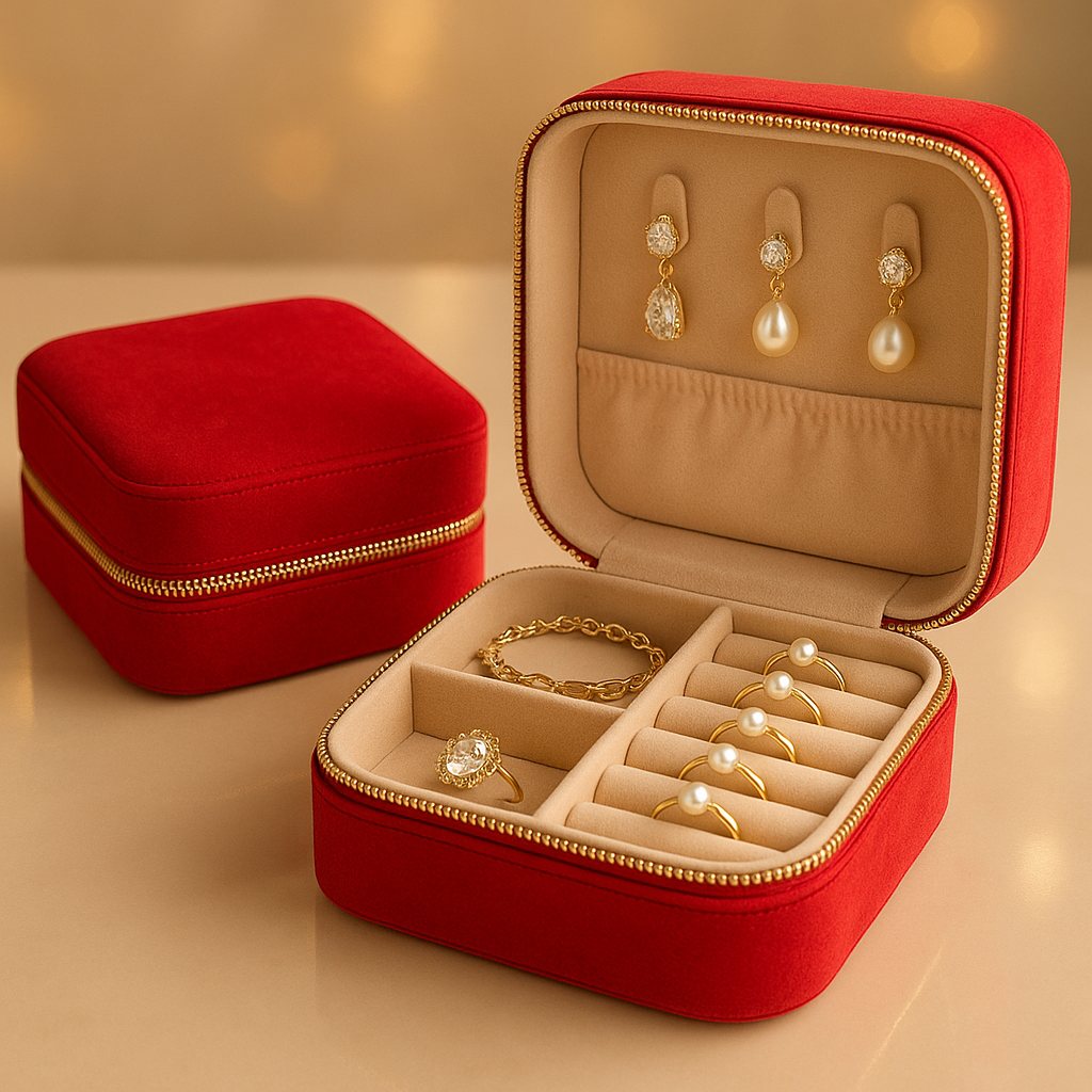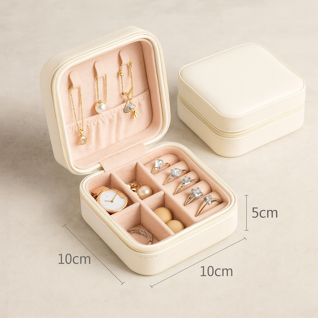 С тази изключително красива и практична кутия за съхранение на бижута и се наслаждавайте на невероятна защита и комфорт при пренасяне на вашите скъпоценни бижута.