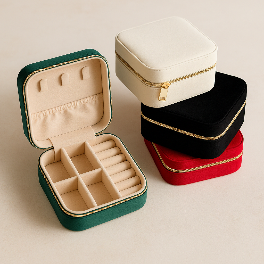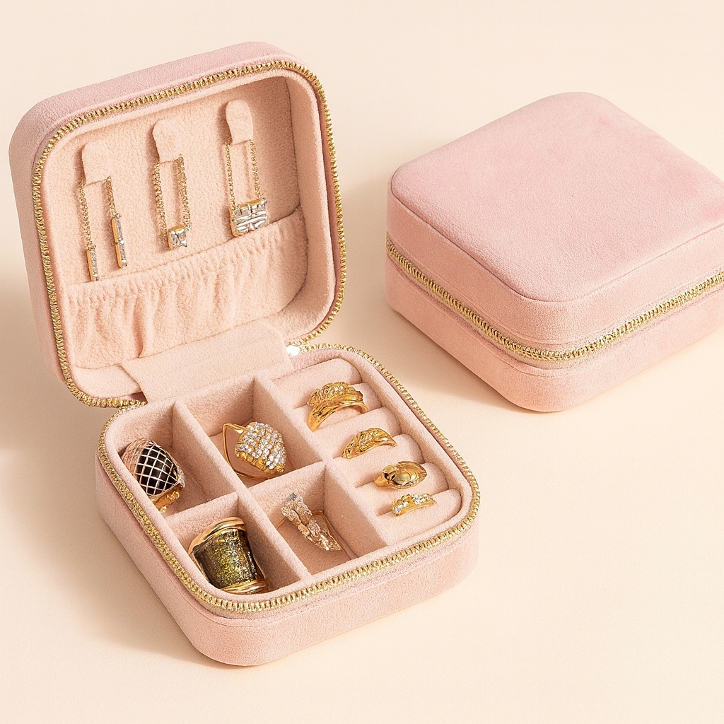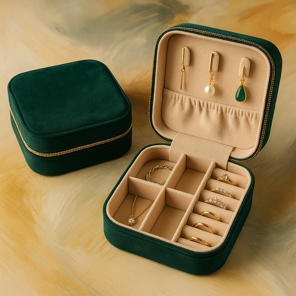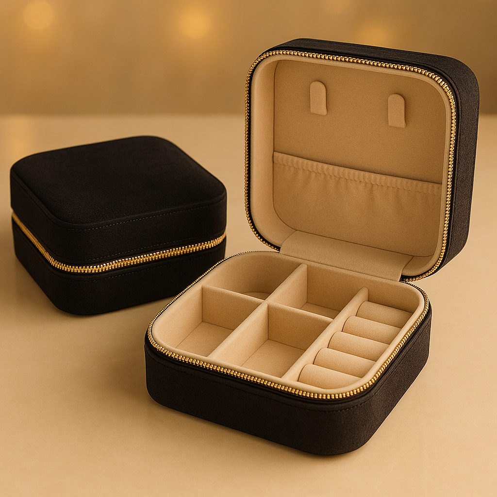 С тази изключително красива и практична кутия за съхранение на бижута и се наслаждавайте на невероятна защита и комфорт при пренасяне на вашите скъпоценни бижута.